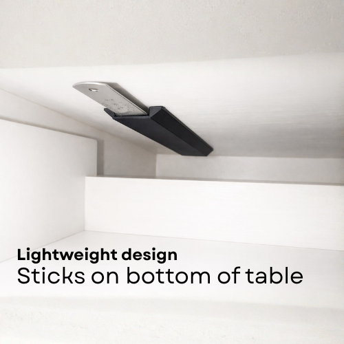 Mounts easily under a desk or drawer using strong adhesive (depending on your setup).